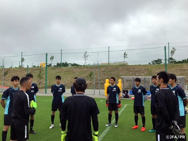 選手たちはU-15、U-18のカテゴリーに分かれてテーマに沿ったトレーニングを行い、毎晩のミーティングではトレーニングの映像を見ながら自己分析を行いました。また、関塚技術委員長はじめ、ゲストアドバイザーで来日されたフランス・フック氏、各カテゴリー代表のGKコーチやナショナルトレセンコーチから多くのアドバイス、指導を受けながらプログラムに取り組みました。