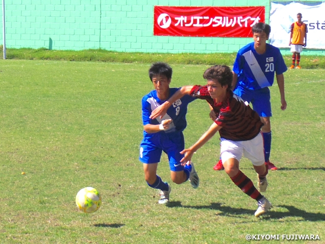 対戦相手であるフラメンゴU-15は、世代別ブラジル代表を経験している選手が多数いる強豪チームです。日本選抜は、立ち上がりからボールを保持しペースをつくりますが決定的なチャンスに持ち込むことができません。そして7分にカウンターから失点を許し0-1で前半を終えます。