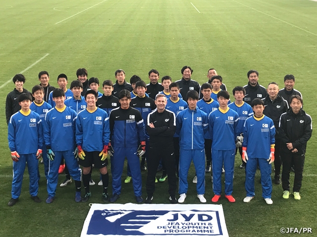 このキャンプは、育成におけるポジション別指導・強化といったテーマのもと、将来の日本代表GK、世界基準のGKの育成を目的とし、年に3回実施しています。3日間のキャンプのなかで、トレーニング、ミーティング、グループディスカッションなど様々なプログラムが予定されています。第3回目となった今回のキャンプには、U-14およびU-13年代各10名、合計20名の選手が集まりました。第1回、第2回のキャンプに引き続き、AFCアジアカップUAE2019でサウジアラビア代表のGKコーチを務めたフランス・フック(Frans Hoek)氏もアドバイザーとして参加しています。