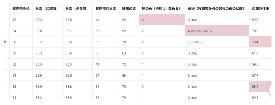 帰寮時のフィジカルコンディション評価