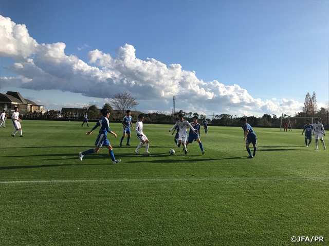 新型コロナウイルスの影響で今年度初開催となったキャンプでしたが、期間中はトレーニングを5セッション、またトレーニングマッチを2試合行いました。11月26日(木)にはJFAアカデミー福島U-15、28日(土)にはアスルクラロ沼津U-18に胸を借りて対戦しました。いずれもハイレベルなゲームが繰り広げられ、選手たちも多くの刺激を受けていました。