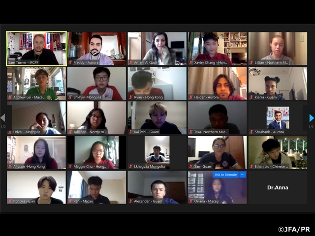 アジアサッカー連盟(AFC)が主催するAFC Aurora eGoalプロジェクトにJFAアカデミー福島の濱野穂乃香選手が参加し、このほど無事に3週間のプログラムを終えました。これはAFCが育成年代の選手を対象に、社会的責任を学ぶために企画したもので、東地区からは各サッカー協会から18名の選手がオンラインで出席しました。環境や女性活躍、ダイバーシティ、社会貢献などについて英語で9回のセッションが行われ、最後はプレゼンテーションも行われました。