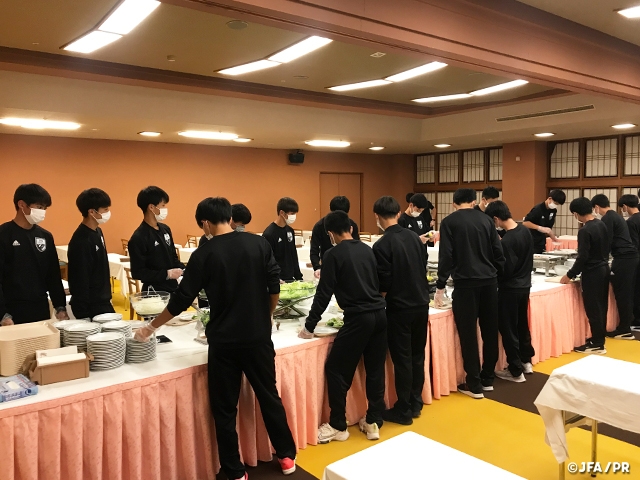 今回のエリートプログラムに選出されたこと、とても嬉しく思います。新型コロナウイルスの影響で開催が難しいなか、最大限のサポートをしてくださっているJFA関係者、家族、学校関係者など全ての人の支えがあって行えているキャンプなので感謝の気持ちを忘れずにプレーしていきたいと思います。トレーニングでは選手一人一人のインテンシティーが高いのでとても刺激になっています。また、ミーティングで監督から自分達の目指すべき道を明確に教えてもらいました。
