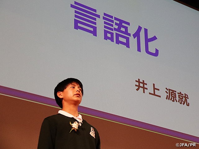 中学2年生の時、プレーでミスをするたびに悩んでしまい、悩んでいるうちに次のミスをしていました。しかし悩んでいても解決しないと思い、試合や練習が終わった後、サッカーノートに良い点、悪い点をまとめました。また、アカデミーでの試合映像を繰り返し見て、自分とプロの選手のプレーを比較し、意見を出し合いました。そうすることでトレーニング中、仲間やコーチに自分の考えを主張することができるようになりました。ノートを書いたり、意見を言い合ったりしてプレーを言語化すると、同じミスをすることが減り、プレーでもうまくいくことが増えました。サッカーにはミスがつきものです。なぜミスをしたのかを整理し、言語化して夢に向かって努力します。
