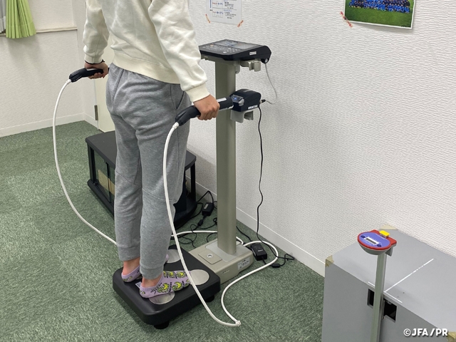 また中学生、高校生の女子選手は、女性ホルモンの働きによって体重や体脂肪率も急激に変化します。定期的に体組成を測定することで、身体にどのような変化が生じているのかを把握し、時期に応じた身体づくりができるよう取り組んでいます。