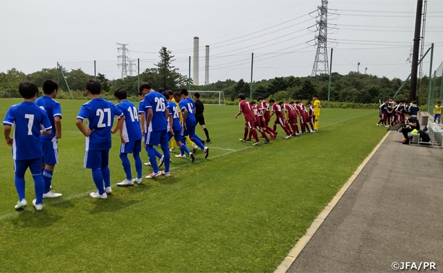 全国から集まった選手たちは、初日から最終日までそれぞれ設定されたテーマを基にトレーニングに臨み、自分のストロングポイントや課題を見つめなおし、自身の力を100%出せるように取り組みました。2日目と4日目に実施したトレーニングマッチでは、それぞれJFAアカデミー福島U-15 EAST、SHOSHI FCと試合を実施しました。どちらも1学年上の選手を中心としたチームでしたが、選手たちは高いインテンシティをもってチームとして一体感をもって戦い、課題を把握する貴重な機会になりました。
