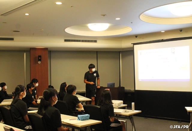 そして、キャンプ期間中にテクニカルスタッフが撮影したトレーニング映像を用いて、カテゴリーごとに分かれてミーティングを行い、GKプレーの3局面と合わせながらプレー映像を確認し、トレーニングやゲームの中での自分のプレーや仲間のプレーを振り返り、ピッチで指導を受けたことを改めて整理する時間となりました。