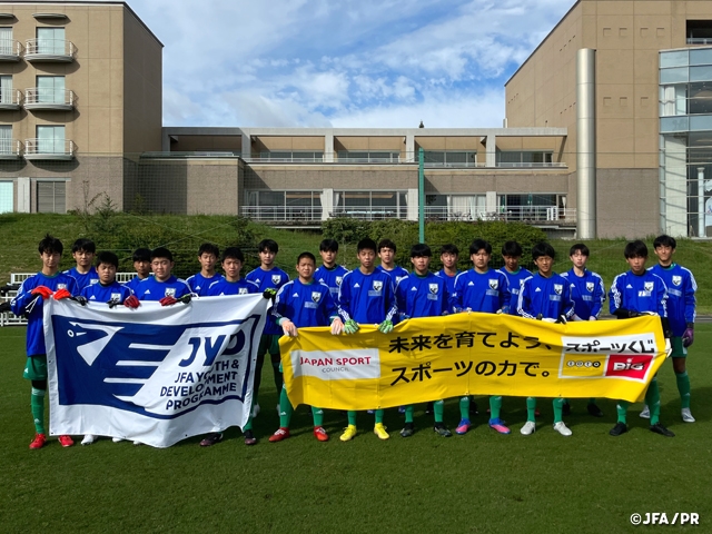 さらに、フィジカルフィットネスプロジェクトの矢野由治氏およびユース育成チーフの小粥智浩氏が、フィジカル測定、ムーブメントプレパレーションの指導なども実施し、またアスレティックトレーナーの金山将大氏から身体の操作性・柔軟性の向上を目的としたストレッチの指導が行われました。フィジカル面、コンディショニングについても自チームに戻っても取り組めるメニューが提示され、選手は早速取り組み、大きな刺激を得ていました。