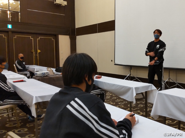 キャンプ期間中に、横浜F・マリノスの宮市選手、シントトロイデンの香川選手からお話をいただく機会もあり、海外での経験やゴールを奪う為に意識していることなど、普段聞くことの出来ない話を間近に聞くことができ、選手は目を輝かせて聞き入っていました。またU-16日本代表の森山監督からも激励の言葉をいただき、自分達の目指すものがより近くにあることを意識する機会となりました。