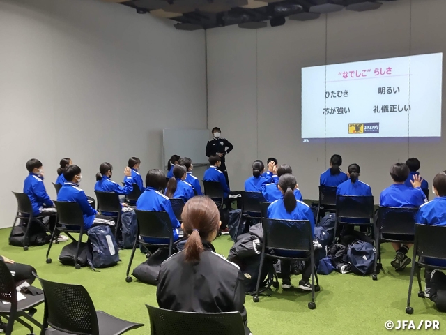 JFAのキャンプに初めて参加する選手が多くいる中で、集合時は不安と緊張が入り混じった様子でしたが、トレーニングを重ねながら、オフザピッチプログラムや普段の生活を通じて積極的にコミュニケーションを取るようになりました。キャンプ終了時には顔つきに変化が見られ、自信をもった表情やプレーへと変わっていきました。