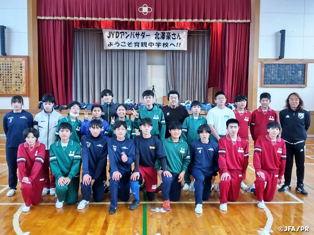 1月26日(木)と27日(金)、北澤JYDアンバサダーが京都府の亀岡市立育親中学校と兵庫県のVAMOS上郡FCを訪問し、サッカー教室を実施しました。このイベントは、JFA登録チームを対象としたJYDキャンペーンに応募頂いたチームの中から、抽選で選ばれた2チームを北澤アンバサダーが訪問して直接サッカー指導をしたものです。
