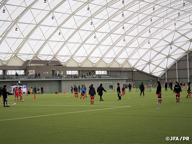 2月18日(土)、19日(日)の2日間、福島県のJヴィレッジ(ナショナルトレーニングセンター)において、「JFA ガールズ・エイト U-12(東北)トレセンプログラム」を開催しました。この事業は、昨年まで「JFA地域ガールズ・エイト(U-12)サッカー大会」として実施していましたが、将来なでしこジャパン(日本女子代表)を目指す女子選手の育成の機会とすべく、2022年度より育成(トレセン)事業に移行して実施しています。今回の東北会場は、北信越、北海道、九州に続き、移行後4回目の開催となりました。