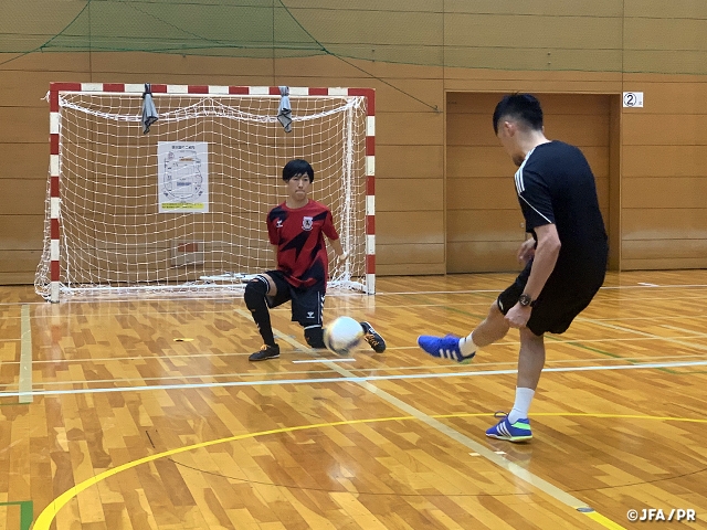 JFAフットサル委員会では、フットサルの発展と強化のために専門分野ごとにプロジェクトを立ち上げ、それらプロジェクトのもとに様々な活動に取り組んでいます。プロジェクトのひとつであるフットサルGKプロジェクトは今年度、Fリーグディビジョン1クラブと協働し、世界で活躍できるGKの育成を目標に、クラブに所属する育成年代(U-18、U-15)のGKを指導する『Fリーグ育成GK巡回指導』を展開します。『Fリーグ育成GK巡回指導』では、現代フットサルGKに求められる理想像から逆算し、育成年代で身につけるべき基礎を伝達するとともに、フットサル日本代表チームで活躍が期待できるタレントの発掘や、Fリーグクラブとのこれまで以上に活発な情報交換も実現していきます。