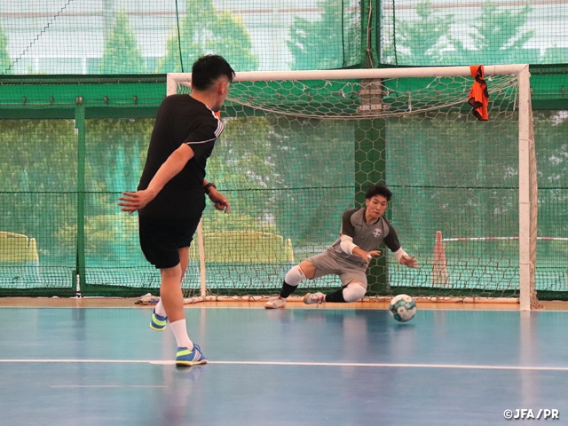基礎技術の無さがとても出たなという感じです。試合中でもどこに弾くのかとか、エラーという点は狩野監督にも言われていて、自分の課題として出てはいましたが、今日のトレーニングでも明らかにキャッチの技術の無さなどが出たかなと思いました。内山コーチとは代表チームで一緒に活動したことがありますが、大分で指導を受けるのは新鮮でした。内山コーチのトレーニングを想像はしていましたが、いつも通りできつかったです。大分では毎日2部練習をしていてフットサルに集中できる環境で、それに慣れていた分、きついトレーニングにもついていけるというか、自分に余裕が出てきたこともあって少しはついていけるようにはなってきたかなと思います。アンダーカテゴリーの活動に参加した時とは求められる技術が少し違っていて、今日内山コーチに教わったものは日本代表のモデルだと思います。日本代表は近いところで10月にAFCフットサルアジアカップ2024予選があるので、そこに食い込んでいけるように頑張っていきます。