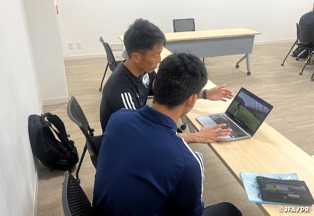 2日目には、フィジカルフィットネスプロジェクトリーダーの菅野淳氏が、フィジカル測定、ムーブメントプレパレーションの指導なども実施し、フィジカル面、コンディショニングについても自チームに戻っても取り組めるメニューが提示され、選手は早速取り組み、大きな刺激を得ていました。