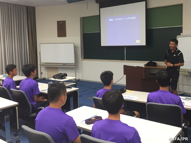 夜のミーティングでは、U-16日本代表の森山佳郎監督から貴重な話をしていただき、選手達も熱心に耳を傾けていました。