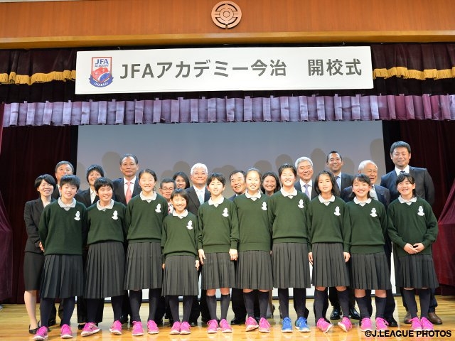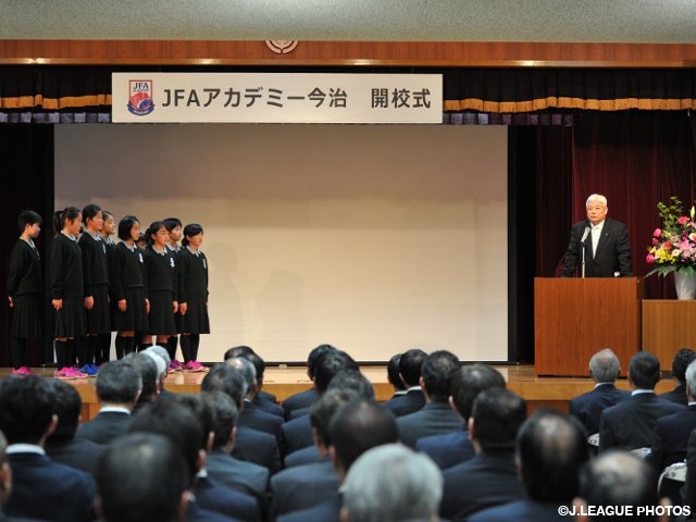 4月8日(水)愛媛県今治市にて、JFAアカデミー今治の開校式を開催しました。桜の花びらが舞うなか、来賓、保護者、在校生、チーム関係者等、約100人の方々にご出席いただきました。