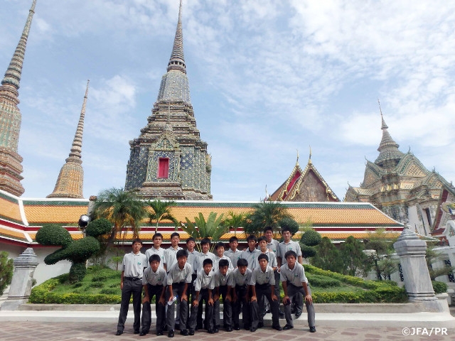 今回の遠征で掲げたテーマは「感性を磨く」です。On the pitchでもOff the pitchでも、日本を離れ、タイという国で日本との違いを感じることです。On the pitchでは、気温、湿度の高い環境で、自分たちと同年代の選手と3試合を行い、タイの選手たちのフィジカルの強さや、アグレッシブな姿勢に刺激を受けました。Off the pitchでは、タイの人たちとのコミュニケーション、タイ料理、寺院見学などから、文化の違いに触れながらも世界共通の挨拶の大切さなどに改めて気付きを感じていたようです。この遠征で「感じたこと」を今後の人生に役立て、さらに感性を高めて日常の行動にも磨きをかけてくれることを期待しています。