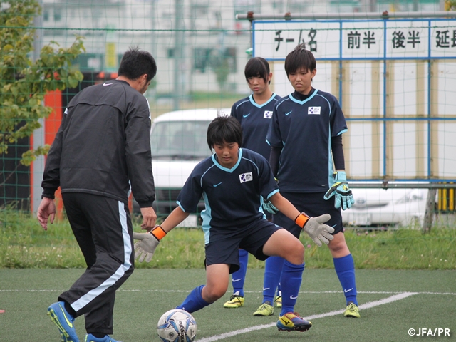 女子GKキャンプを終えて、いろいろなことを学びました。今までは適当にボールを蹴り、すぐに相手に奪われてピンチになって失点につながることが多かったのですが、このキャンプでキックの精度をあげないと上にすすめないということがわかりました。次に呼ばれた時のためにしっかりと練習していきたいです。他にもクロスボールのトレーニングでは、落下地点に早く入りすぎてかぶってしまったり、ボールを落とすことが多く、それをなくすためにはしっかりボールを見て何回も何回も練習し、感覚を掴んでクロスボールを確実にキャッチしていくことだと学びました。