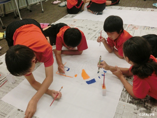 私は堺まつりに参加して2つのことを学びました。1つ目は、協力をすれば成功することです。旗作りをしていく中で絵の上手い人苦手な人に分かれてしまい進み具合も遅れていきました。でも、最後にはみんなで協力をすることで完成し堺まつりに間に合いました。そのことから「協力する」ことの大切さを学ぶことができました。2つ目は堺市のいろいろな方から期待されているということです。パレードに参加しているときに市民の方から拍手や「がんばれ」と声をかけてもらいました。さらにサッカーが上手になりたいと感じました。アカデミー生活でも今回の経験を忘れずに頑張っていきたいです。