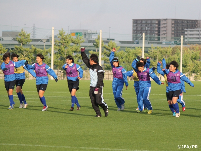 前日までの雨が上がった大阪で4日(金)、U-15日本女子選抜のトレーニングキャンプがスタートしました。10月にも同じ年代のキャンプを44名で開催しましたが、今回は約半数での活動となります。トレーニング前のミーティングで大野真トレセンチーフは「10月のキャンプから半分の人数となり、今回呼ばれたことはみんなが日頃頑張ったこと、そして周りもそれを観ていたからだ。オンもオフもなでしこらしく行動してほしい。目標に向かって努力する力、自分で自分を鍛える力、自己教育力の3つを高めてほしい。3泊4日はあっという間。短い時間を大事に、ベストパフォーマンスを出せるように頑張ってほしい」と選手に激励の言葉をかけました。ピッチでは、強風の中でのウォーミングアップの後、パス&コントロールを様々なメニューで60分ほど徹底的に行いました。その後ミニゲームを行い、トレーニングを締めくくりました。夜には勝谷ドクターから「栄養」と「サッカーと怪我」をテーマにしたレクチャーを受け、長い初日を終えました。