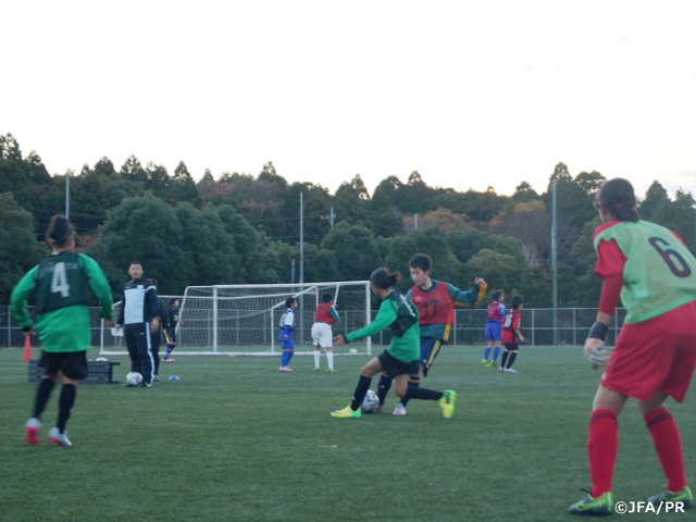 「ナショナルトレセン 女子U-14 東日本/西日本」が12月11日(金)、東日本は鹿島ハイツスポーツプラザ(茨城県鹿嶋市)で、西日本はJ-GREEN堺(大阪府堺市)で始まりました。東日本には北海道・東北・関東・東海・JFAアカデミー福島、西日本には北信越・関西・中国・四国・九州・JFAアカデミー福島から選手が集合、4日間のプログラムに取り組みます。