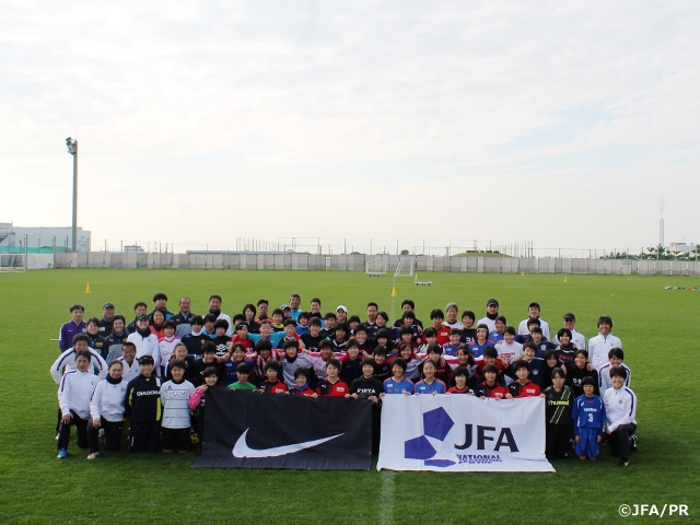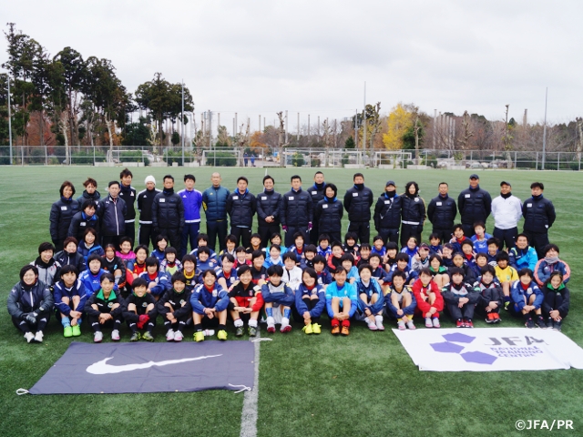ナショナルトレセン女子U-14は東西同時開催にて行い、“世界のなでしこを目指して”とし、選手には、「テクニックと関わりを身に付けて、攻守にハードワークできる選手になる」「失敗を恐れず強い気持ちを持って積極的にチャレンジしよう!」という指針のもと、選手たちは毎日のトレーニングやレクチャー、グループミーティングを積み上げていきました。