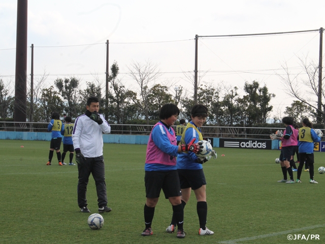 2016年度1回目の開催となる女子GKキャンプが3月4日(金)、清水ナショナルトレーニングセンターJ―STEPで始まりました。今回は高校1年~3年生が7名、中学3年生が5名、小学5~6年生が12名と、広い年代の選手が集まりました。初日となる4日は、小学生、中高生が混じってのウォーミングアップから始まり、フィジカル測定、そして4対4+GKのゲームを行いました。