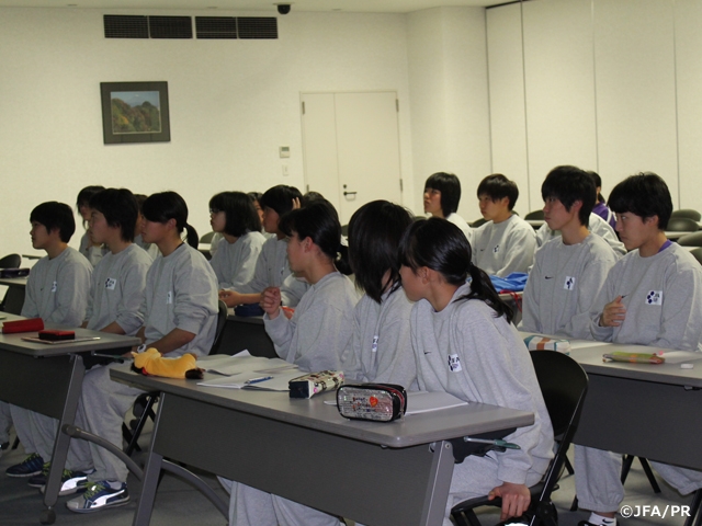 また、夜のミーティングでは、「分析」について学び、女子サッカーアジア最終予選、なでしこジャパンvs中国女子代表の試合を観戦。それぞれの目線で試合を分析しました。
