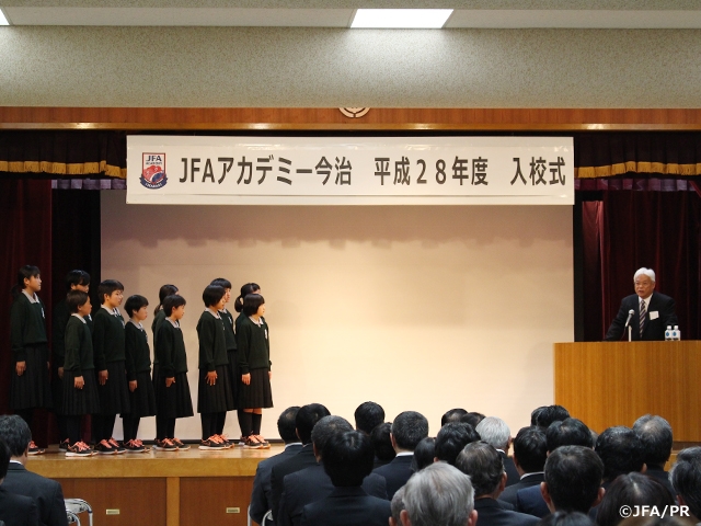 出席した田嶋幸三JFA会長よりアカデミー生へ向けて「サッカー以外でも、 いろんなことにチャレンジしてほしい」と激励の言葉が送られました。また、新入生の決意表明では「今治から、世界の舞台で活躍できる選手になりたい」と宣言しました。