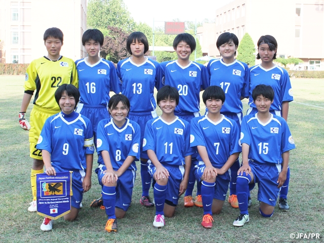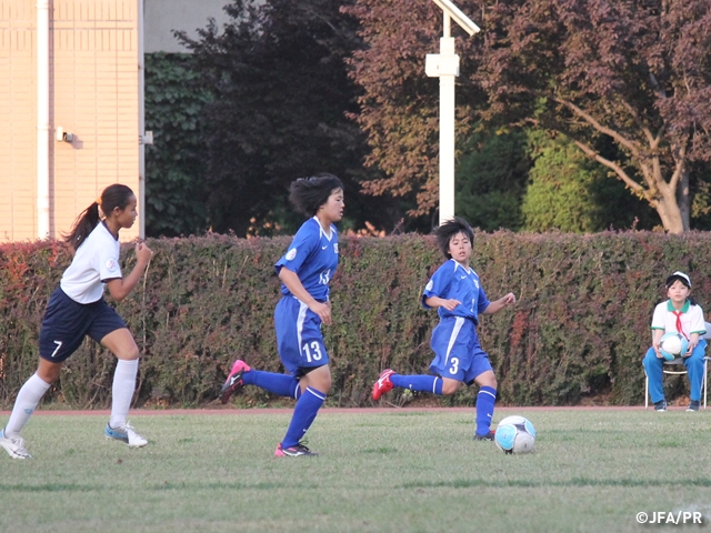 後半のフレッシュなメンバーも積極的にプレーし、両サイドからの攻撃によって城和怜奈選手(JFAアカデミー福島)の3得点、河本紗英選手(愛媛FCレディースMIKAN)の2得点などで10点を追加して、重要な大会初戦を23-0の大勝でスタートすることができました。さらに、後半途中には先発GKの竹下 奏彩選手(INAC神戸レオネッサU-15)に替わって大場朱羽選手(JFAアカデミー福島)もピッチに立ち、今回の遠征に参加した全員が国際大会のデビューを飾ることができました。