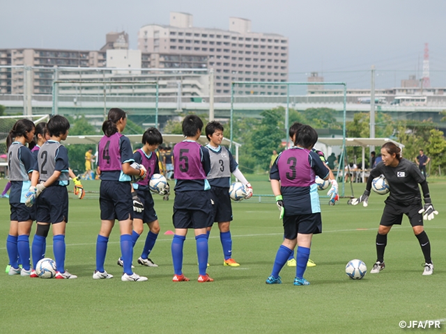 現役時代、この女子GKセレクションキャンプの前身になる「スーパー少女プロジェクト」にゲストとして参加させていただいたことがありました。その時もトレーニングから参加させていただいたのですが、当時は基本的なところから指導が必要だったのに比べ、今回はGKの技術も上がり、理解力もある印象を受け、この年代のGKの強化が進んでいるのを感じました。また、選手たちの理解力も高く、「修正しよう」と声をかけるとすぐにできる選手が多いのも印象的でした。スローイングの質、ディストリビューションの質、キックの質など、まだまだ足りない部分も多いですが、入念に取り入れることで大きな変化を感じられました。練習した分、成果につながっていくので、チームに持ち帰り、個人でももっともっと強化していってほしいと思います。