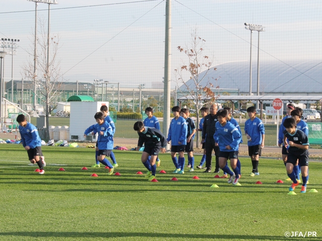 U-15日本女子選抜のトレーニングキャンプが2日(金)、大阪でスタートしました。オープニングのミーティングでは、加藤賢二監督から「10月のキャンプは46人だったが、今回のキャンプは23人。来年のU-16日本女子代表に選出されるという意識を持って、キャンプに臨んでほしい」と話がありました。