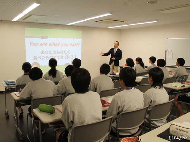 栄養のレクチャーでは、今までの「基礎的なことの振り返り」に加え、「勝つためにできること」、「海外で意識すること」など今後につながることを多く学びました。楠瀬監督からはU-17女子ワールドカップの振り返りとともに、U-15年代でやるべきこと、今やっておくべきことを伝えてもらい、選手たちは食い入るように聞いていました。明日以降のトレーニングが今日以上のものになるという確信が選手たちの目から感じ取れました。この4日間で、トレーニングはもちろんのこと、レクチャーやオフ・ザ・ピッチでの取り組みから多くの刺激を受けて大きく成長し、充実したキャンプになることを強く願います。