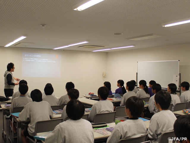 夜は、女性特有の身体の仕組み、ドーピングについてレクチャーを受けました。選手たちが積極的に質問する場面も見られ、この日の活動を終えました。