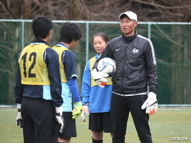 最終日となる5日(日)午前は、なでしこジャパンの大橋昭好GKコーチがトレーニングを視察に訪れ、選手たちへ激励の言葉をかけました。