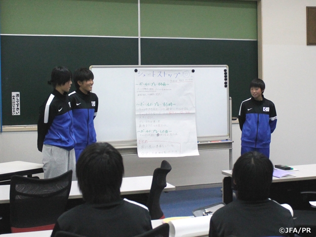 また夜のミーティングで行った自己紹介やトレーニングの振り返り、GKのプレー分析の発表などでも積極的に発言したり、コミュニケーションをとる姿が数多くみられ、3日間という期間の中でも選手たちの成長や変化を感じることができました。選手たちには、このキャンプで学んだことや感じたこと、気づいたことを今後の成長につなげていけるように、日々高い意識と強い意志を持って取り組み続けてもらいたいと願っています。今回のキャンプにご協力いただいた関係者の皆さまに感謝申し上げます。