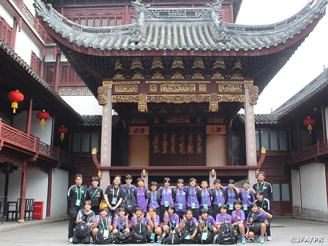 4月14日(金)からスタートしたJFAエリートプログラム女子U-14中国遠征は9日間の全日程を終え、22日(土)、日本に帰国しました。EAFF U-15 Girls Tournament 2017の全試合が終了した翌日は、出場した全9カ国が上海市内の観光を行うEAFFのプログラムに参加。上海を代表する観光地のひとつである庭園「豫園(よえん)」等を訪れ、選手たちは短い時間の中で中国の文化に触れることができました。また、その夜には上海市内のホテルでフェアウェルパーティーが開催されました。選手たちは各チームで準備した出し物を行いながら、各国のチームと交流を深めました。