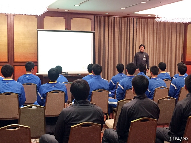 夜のミーティングでは、トレーニングを撮影した映像をもとに、各プレーを振り返り、更なる成長にむけた課題の抽出と、その克服に向けた取り組みを共有します。2日目以降も選手の成長に期待したいと思います。