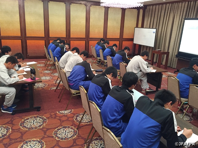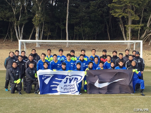 2月11日(日)~13日(火)まで、ナショナルGKキャンプが静岡県御前崎市で実施されました。日本全国から選出された20名の選手がU-15、U-18に分かれトレーニングが行われ、ナショナルトレセンGK担当コーチから、きめ細かい指導やアドバイスが常に飛んでいました。また、夜のミーティングでは、トレーニング映像を見て振り返ったり、選手自身に夢を書いてもらい、その夢の実現のために、今やるべきことを考えてもらうなど、選手個々のレベルアップのために様々なプログラムが実施されました。