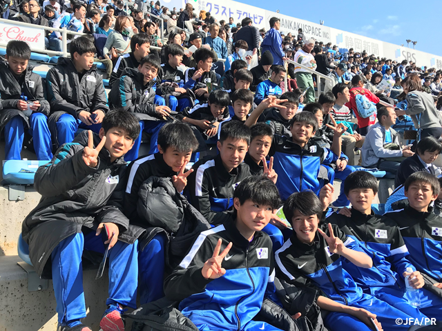 午後はオフザピッチプログラムとして、Jリーグのジュビロ磐田 vs FC東京を観戦しました。トップレベルの試合を生で観戦したことで、選手達は刺激を受けていました。