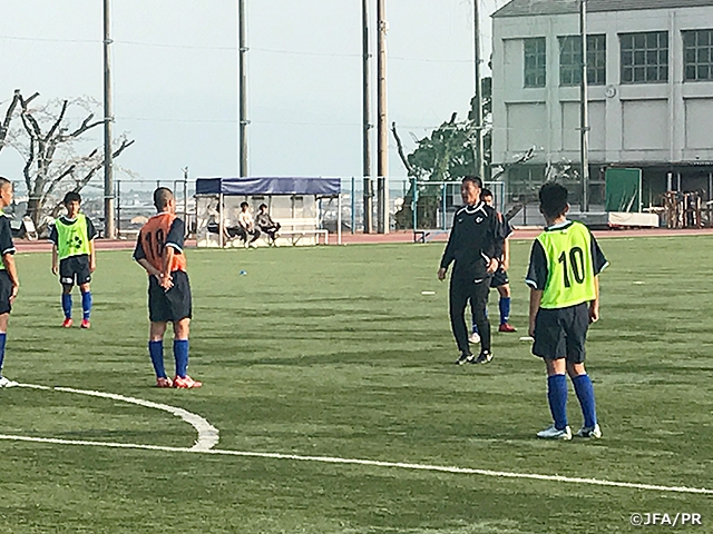 2018タウンクラブ・中体連キャンプが4月2日(月)、静岡県富士市で始まりました。この活動は今年からの新事業で、タウンクラブ・中体連に所属している選手のみを招集して行います。JFAエリートプログラムでは、Jクラブアカデミー所属の選手に偏る傾向があり、今回のキャンプでは対象を絞ることによって新たな選手の発掘を狙いとしています。また中体連から派遣いただいたコーチには、JFAの取り組みを発信していただけることに期待しています。