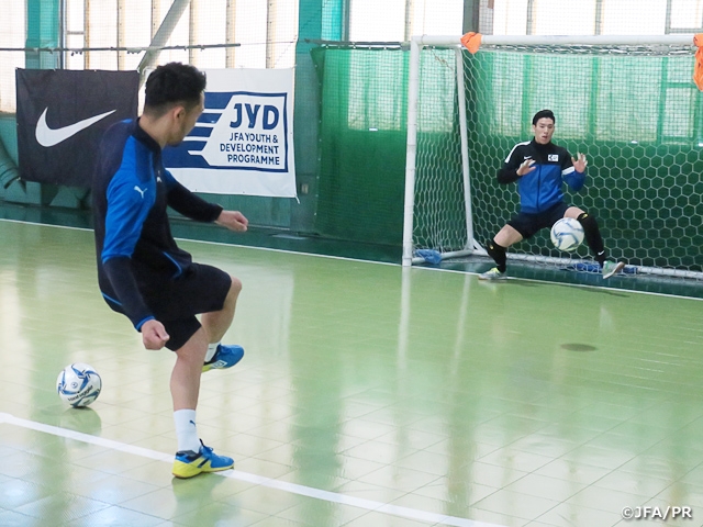 今回のキャンプでは全国からU-23の選手4名とU-18の選手6名の計10名が招集され、フットサル日本代表の内山慶太郎GKコーチとシュライカー大阪の定永久男GKコーチが指導にあたりました。3月に行われた東日本開催と同様に、2日間でミーティングを2セッションとトレーニングを3セッション行いました。