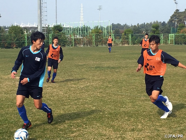 11月5日(月)、JOC日韓競技力向上スポーツ交流事業の一環として実施されるJFAエリートプログラム U-14の活動が、スタートしました。本遠征では韓国にてU-14韓国代表と2試合のトレーニングマッチを予定しています。