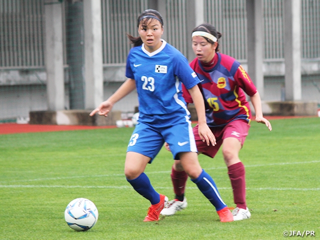 私は今回のキャンプで「積極的にプレーする」ということを目標として参加しました。また、オフの面でも他の選手とのコミュニケーションを大事にしてきました。集合して、最初は思うように話しかけることができずにいましたが、みんなからも声をかけてくれたりして、たくさん話せるようになりました。オンの面では、消極的にならず自分からボールを呼んでプレーすることを意識しました。2日目と3日目の試合では、積極的にボールを受けたり、スペースへの抜け出しでシュートまで持っていけるチャンスが何回かありましたが、決めきることができませんでした。トレーニングの中でも、「ゴールを奪う」ということをやっていましたが、大事な場面でしっかりと決めきるようになることが課題だと感じました。また、夜のミーティングではポジションごとの特性を話し合い、発表をしたのですが、自分のやるべきことを再確認することができました。フィジカルトレーニングの部分では、ボールをキープする時の腕の使い方やアプローチに行った時にしっかり止まることができるように、など身体の使い方を学びました。この四日間で、私は自分に足りない部分を感じることができたり、仲間からも学ぶことが多く、とても充実した四日間でした。このキャンプで学んだことを自分のこれからに活かし、一日一日を大切にして成長していきたいです。