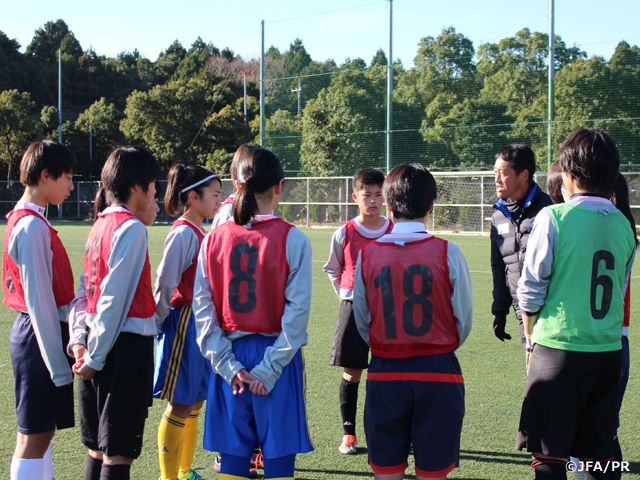 ナショナルトレセン女子U-14は東西に分かれて四日間のプログラムを実施しました。全日程、天候にも恵まれ、素晴らしい環境のなかで全国から選ばれた120名の選手が切磋琢磨し、互いに刺激を与え合いました。各グループに分かれてトレーニングを行うなかで、初日のぎこちなさや硬い表情は溶け、最終日のゲームでは、各グループがひとつのチームとなって勝負にこだわり、選手同士でプレーを追求したりと、集大成にふさわしい白熱した質の高い攻防を見せてくれました。ミーティングにおいては、記憶に新しいFIFA U-20女子ワールドカップ、FIFA U-17女子ワールドカップの映像を観ながら、世界を意識した日頃の積み重ねが重要であることを学びました。ここで学んだことを日常の中で発揮することで、さらに選手として人間として成長してくれることを願います。今回のナショナルトレセン女子U-14を開催するにあたり、ご協力いただいた全ての方々に感謝申し上げます。